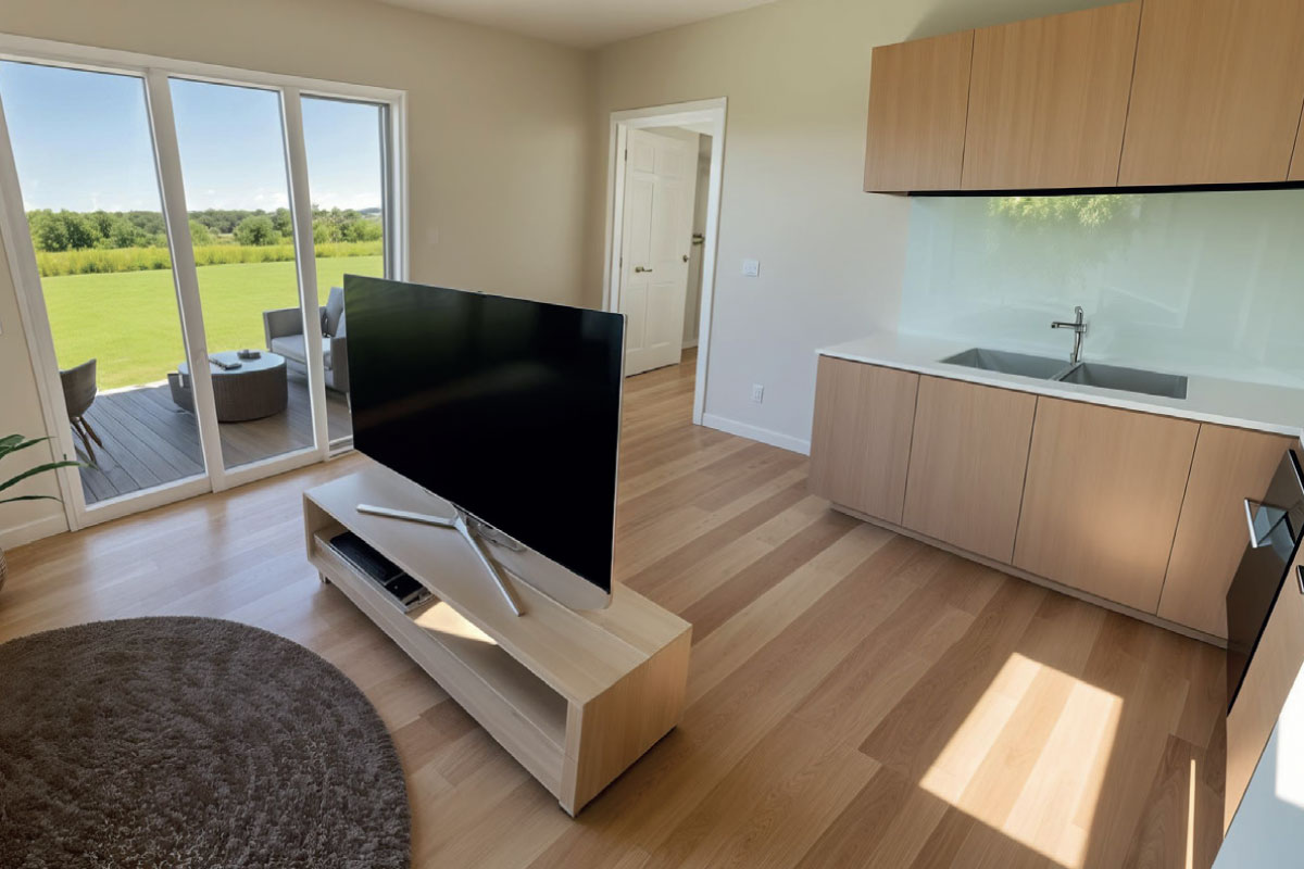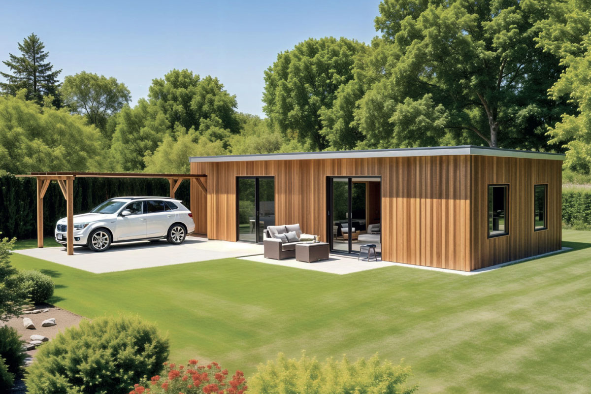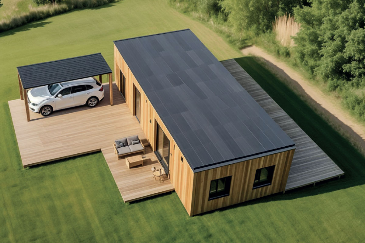 PVC střecha, výplně otvorů plast, podlaha, vinyl, stěny a strop SDK, interíérové dveře obložkové, koupelna dlažba, obklad, Geberit WC, keramické umyvadlo, sprchový kout, fasáda dřevo/omítka, výmalba, interiér a exteriér osvětlení, zásuvky, rozvaděč