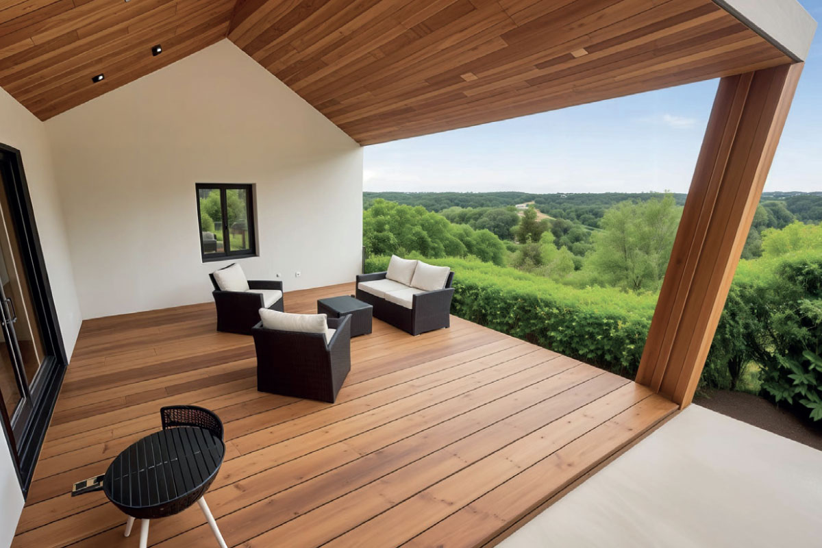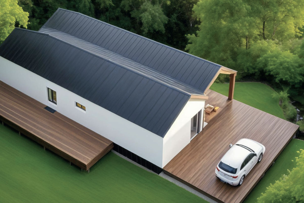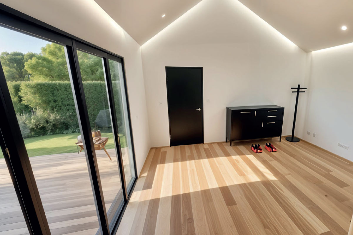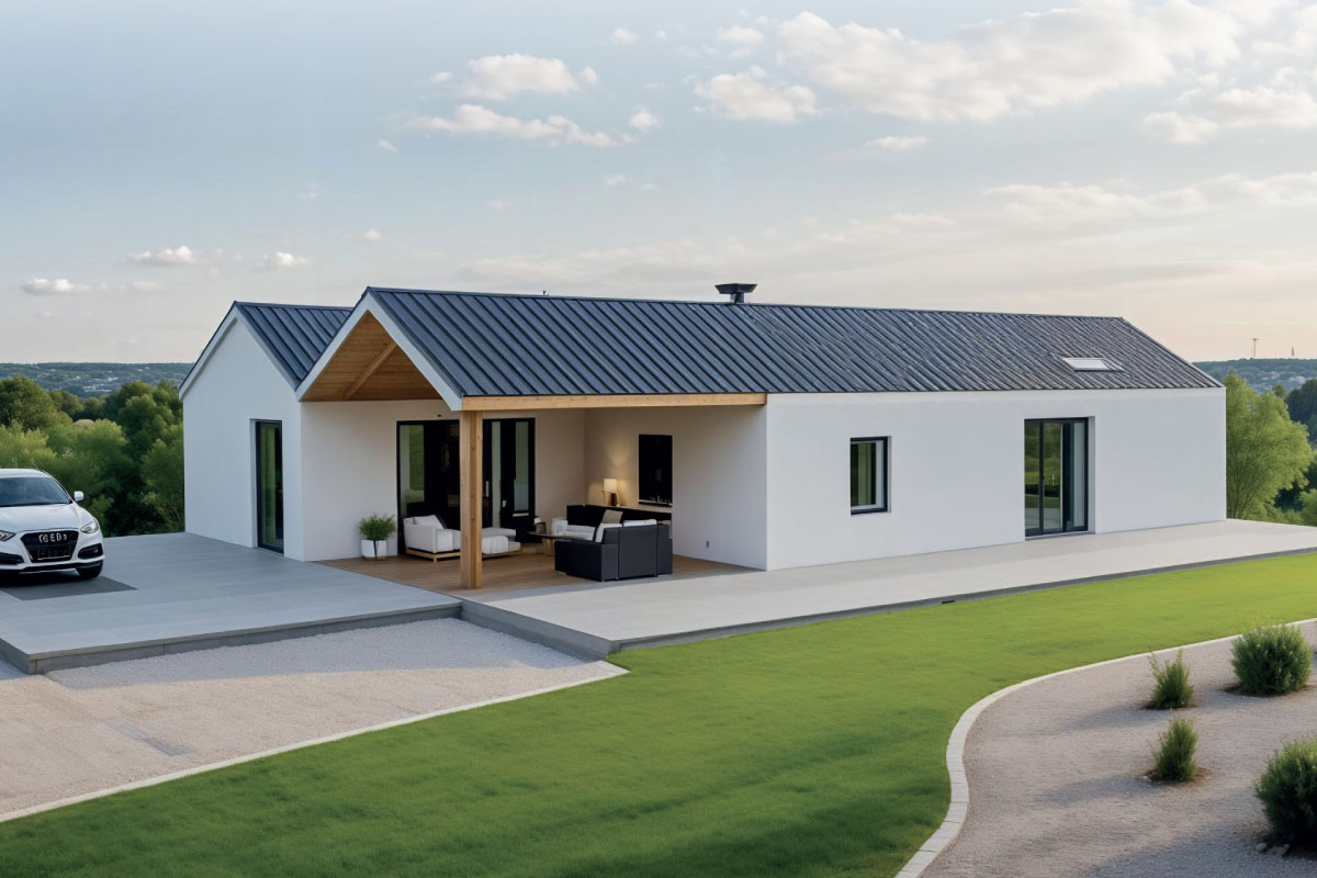 PVC střecha, výplně otvorů plast, podlaha, vinyl, stěny a strop SDK, interíérové dveře obložkové, koupelna dlažba, obklad, Geberit WC, keramické umyvadlo, sprchový kout, fasáda dřevo/omítka, výmalba, interiér a exteriér osvětlení, zásuvky, rozvaděč