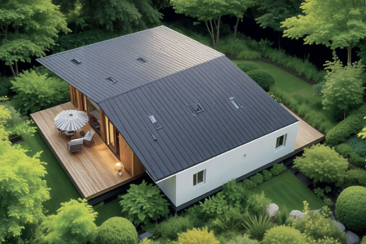 PVC střecha, výplně otvorů plast, podlaha, vinyl, stěny a strop SDK, interíérové dveře obložkové, koupelna dlažba, obklad, Geberit WC, keramické umyvadlo, sprchový kout, fasáda dřevo/omítka, výmalba, interiér a exteriér osvětlení, zásuvky, rozvaděč