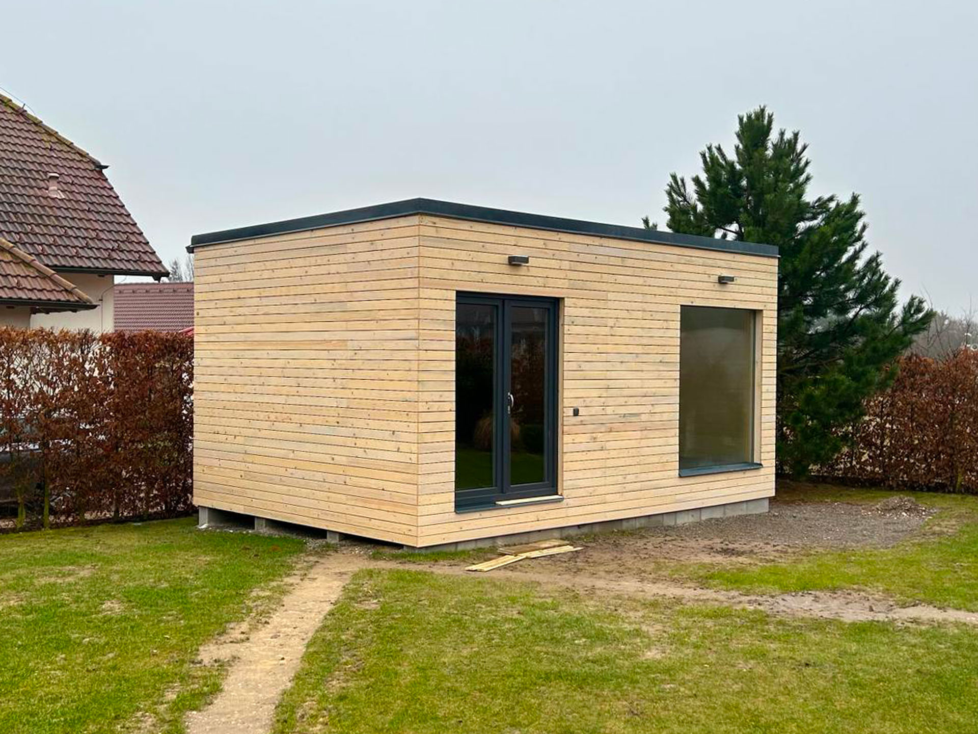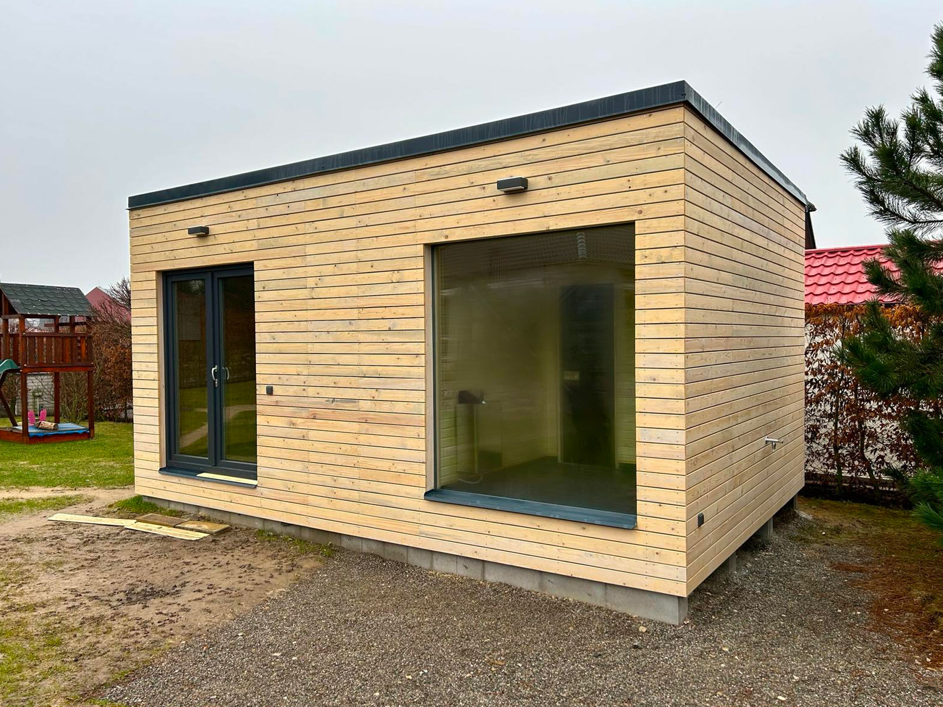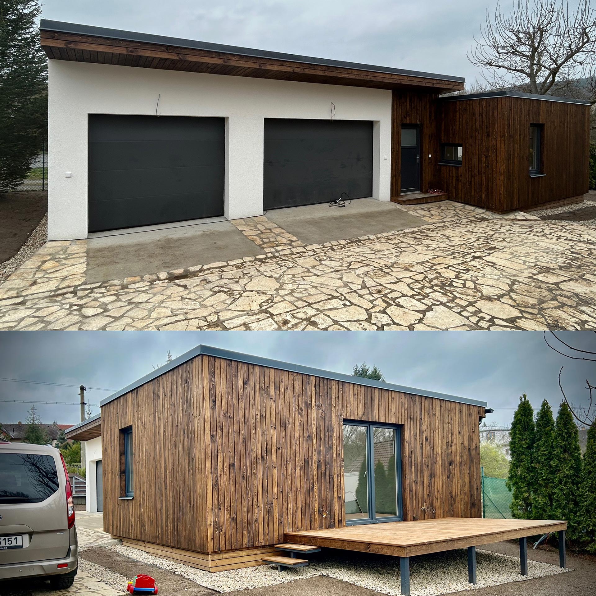 Možnosti skládání modulových dřevostaveb, jsou jakékoliv. Tvar nebo dispozice je vždy vyráběna na míru a podle představ zákazníka-nic není typově omezené. Možnosti variability jsou, díky kompletně naší samostatné výrobě, neomezené – ať už se jedná o přízemní domek, či stavbu patrovou.